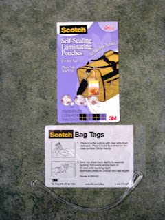 Time to add some more DIY tips on how to laminate and create your own custom ICE Tools. This is so easy to do....next time you stop at Wal-Mart or an office supply store pick up some Scotch (3M)Brand Business Card (10) and Luggage Tag (2) Laminating Pouches.
