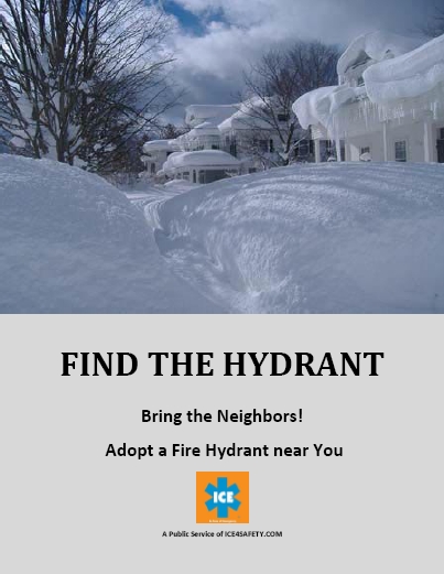 Update 12-12-10: We've added a zipped file of posters on the main page of the website and Adopt A Hydrant Certificate files so your FD can create their own posters and let people "adopt" a hydrant for the purposes of ensuring it is clear of any obstruction (snow) in the event of a fire..... check them out.... http://www.ice4safety.com/